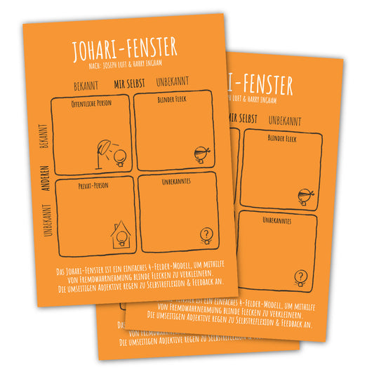 Kompakte Visualisierungen bekannter Modelle wie Johari-Fenster, Inneres Team oder Tetralemma – als hochwertige Postkarten.